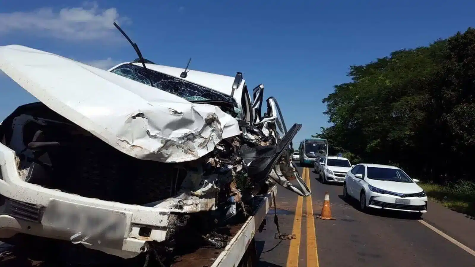 O motorista da caminhonete, ainda não identificado, ficou ferido e com fraturas expostas. Os bombeiros não souberam informar para qual hospital ele foi levado. Os ocupantes do caminhão não sofreram ferimentos.