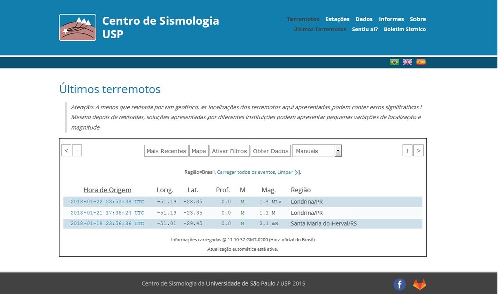 [dropcap]D[/dropcap]ois tremores de terra foram registrados em Londrina, no norte do Paraná, entre domingo (21) e segunda-feira (22), segundo o Centro de Sismologia da Universidade de São Paulo (USP).