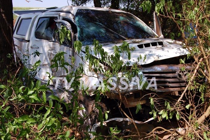 Com o choque a caminhonete perdeu o controle, atravessou a pista e só parou após bater em duas arvores.