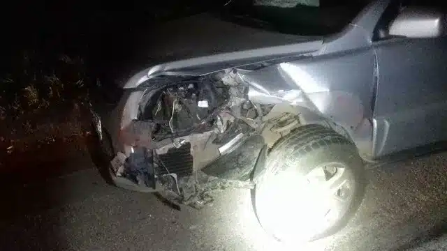 De acordo com a Polícia Rodoviária Federal (PRF), uma das rodas do bitrem soltou, bateu na proteção de metal que fica na pista e, por fim, atingiu o carro.