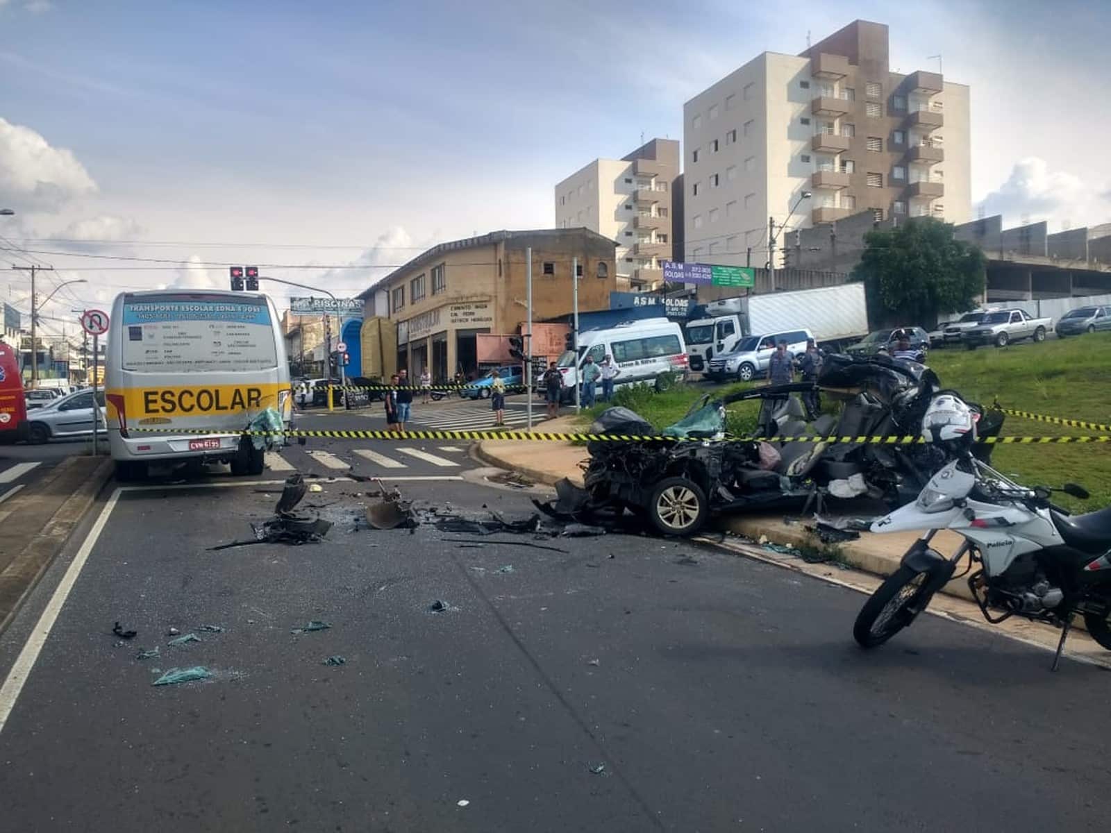 O ônibus não tinha passageiros no momento da colisão e o motorista não ficou ferido. Uma faixa da avenida precisou ser interditada. O carro ficou totalmente destruído.