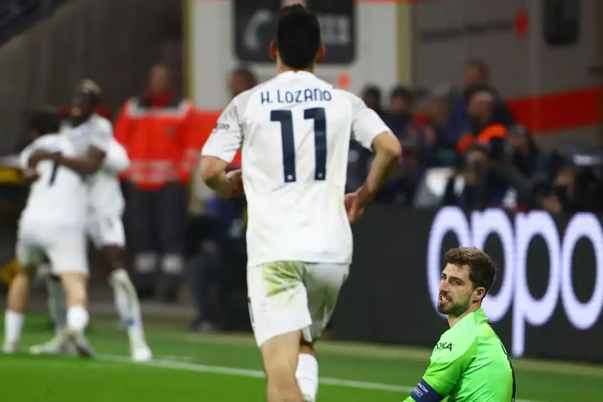 A partida foi disputada no Deutsche Bank Park. Lozano jogou como ponta direita e se associou a um dos grevistas mais bem lubrificados da atualidade, como é o caso de Khvicha Kvaratskhelia e Osimhen da Nigéria..