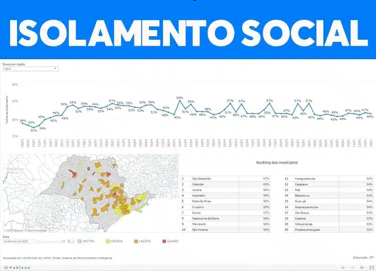 Profissionais da saúde consideram que o índice ideal de isolamento é de 70% para evitar a transmissão da doença e manter uma taxa de ocupação hospitalar dentro da capacidade de atendimento.