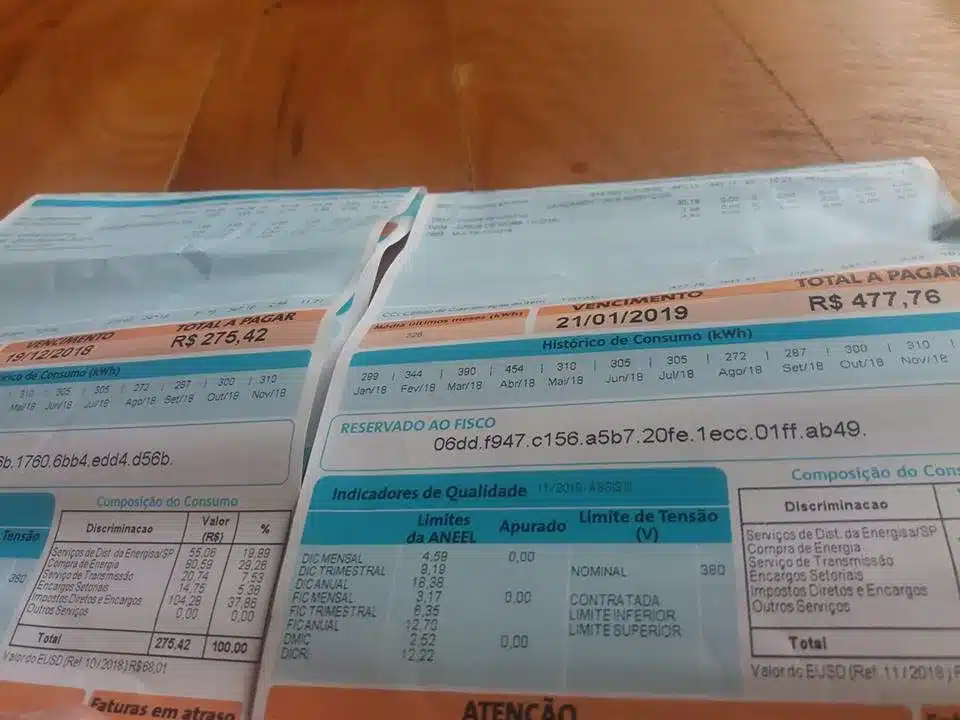 Um dos leitores enviou uma comparação das contas recebidas, uma de dezembro de 2018 e uma de janeiro de 2019. Na de dezembro, o valor da conta é de R$ 275,42, já na de janeiro o aumento no valor da conta é de mais de 70%, chegando a R$ 477,76.