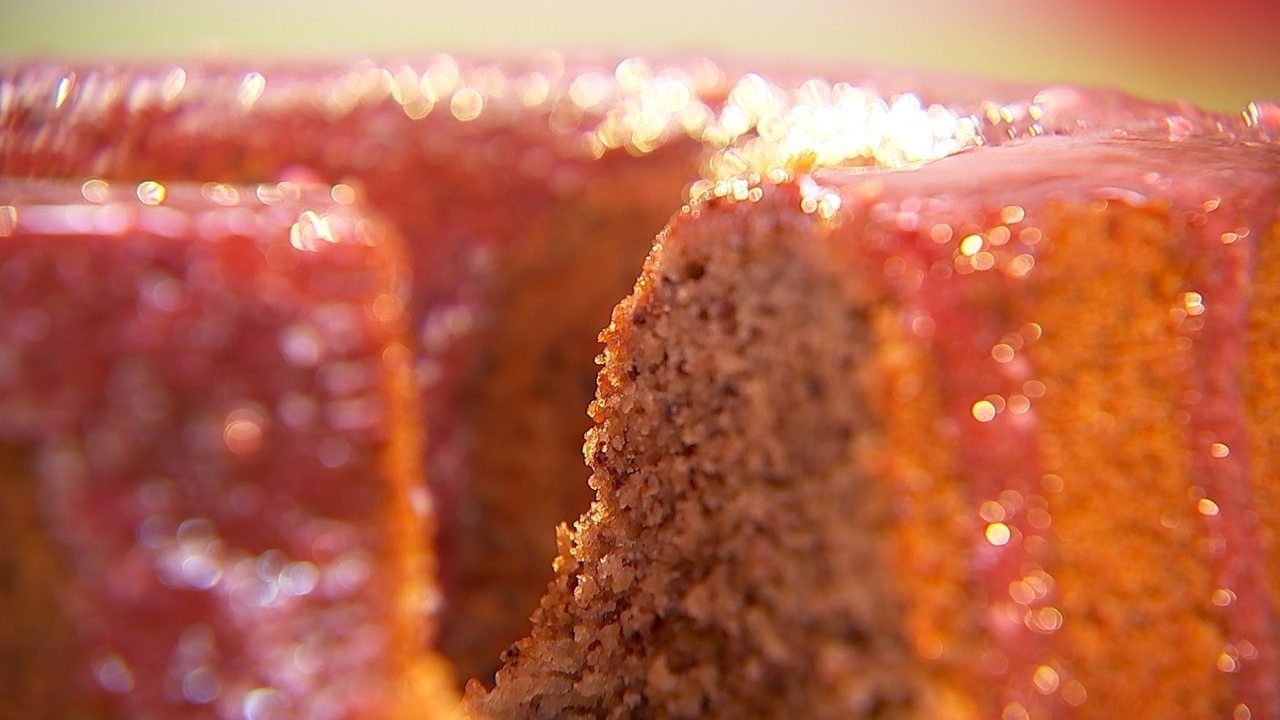 Faça a cobertura. No fogo bem baixo, deixe as jabuticabas com ½ xícara de água até apurar. Separe a calda, espere esfriar e inclua o açúcar de confeiteiro. Use menos açúcar se quiser uma calda mais líquida. É só colocar sobre o bolo. Bom apetite!