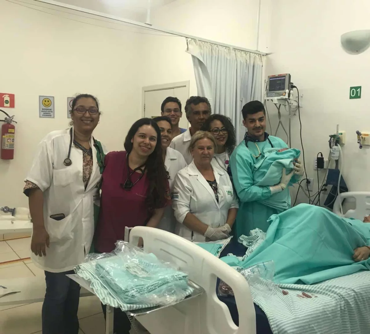 No consultório, a médica Dra. Lorrana de Sousa Landim Xavier, que estava de plantão na ocasião, fez o exame de toque e diagnosticou dilatação total de 10 dedos. Imediatamente, o outro médico plantonista, Dr. Rone Eder de Souza Lima, encaminhou a gestante para a sala de emergência, ao mesmo tempo que a ambulância do SAMU foi acionada. Também fazia parte do plantão daquela madrugada, e ficou atenta ao caso, a médica Dra. Berenice Umbelino Gatti.