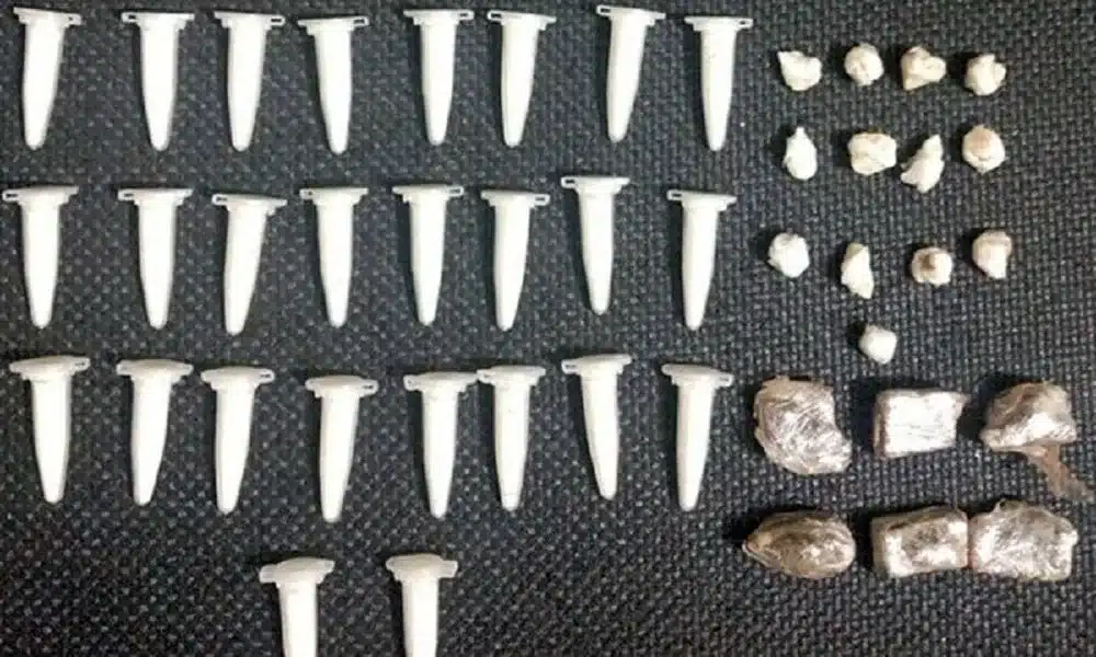 A equipe conseguiu abordar o homem, que confessou estar vendendo entorpecentes. De volta ao local onde ele teria jogado a sacola, foram localizados 26 pinos de cocaína, 13 pedras de crack e seis porções de maconha.