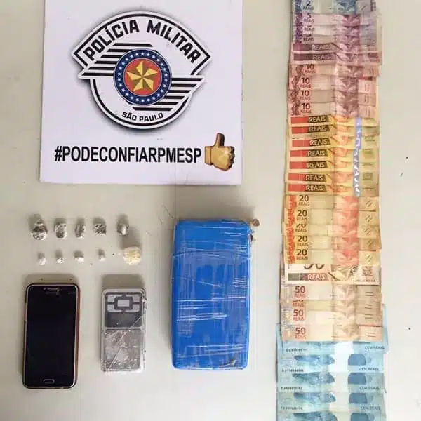 Os imóveis de ambos foram vistoriados. Em um deles, nada de ilícito foi encontrado. Já no outro, com apoio da cadela Erah, foram localizados um tijolo de crack e uma porção a granel do mesmo entorpecente; além disso, foi apreendida a quantia de R$ 1.147,00.