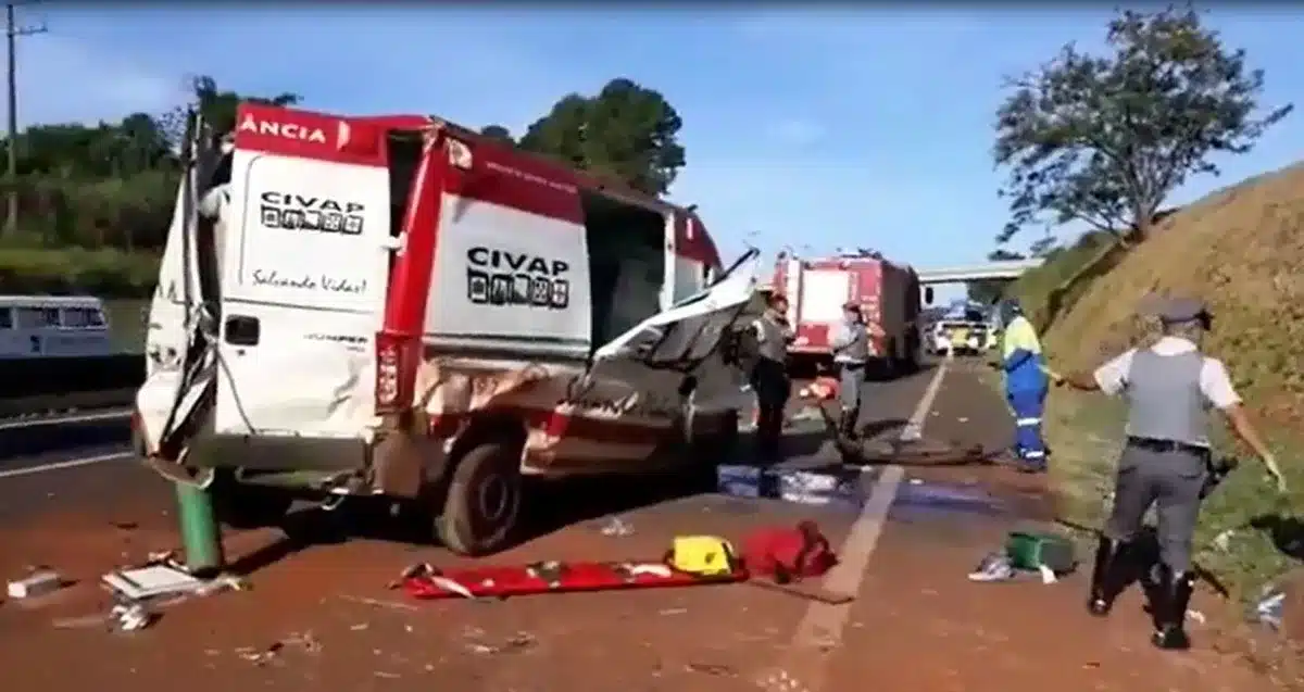 Uma ambulância do Serviço de Atendimento Móvel de Urgência (Samu) capotou na tarde desta quarta-feira (8) no km 442 da Rodovia Raposo Tavares (SP-270), em Assis (SP).