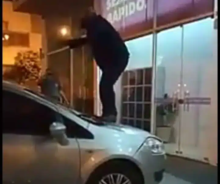 Descontrolado ele subiu sobre o capô do carro e teto, pulando sobre o mesmo, que ficou danificado. Durante o ato ele proferiu ameaças de morte ao Vereador Valmir Dionísio e ao seu suplente Ernesto Nóbile.