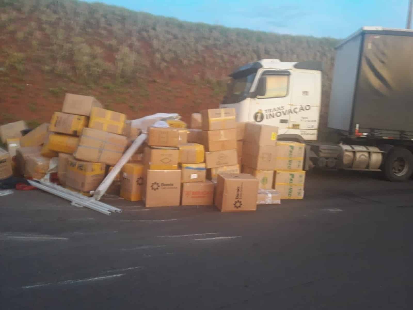[dropcap]U[/dropcap]m caminhão tombou na Rodovia Miguel Jubran (SP-333) em Assis (SP), na noite desta quinta-feira (1°). Por conta do acidente, várias caixas de papelão se espalharam e uma das faixas da rodovia precisou ser interditada.