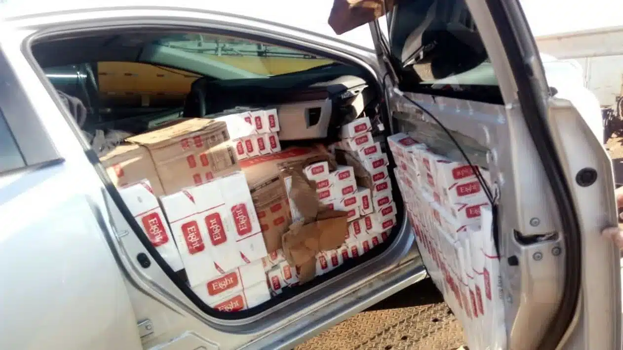 Durante a vistoria no veículo, os policiais encontraram 20 mil maços de cigarro sem notas fiscais e de origem estrangeira, além de 300 gramas de maconha.