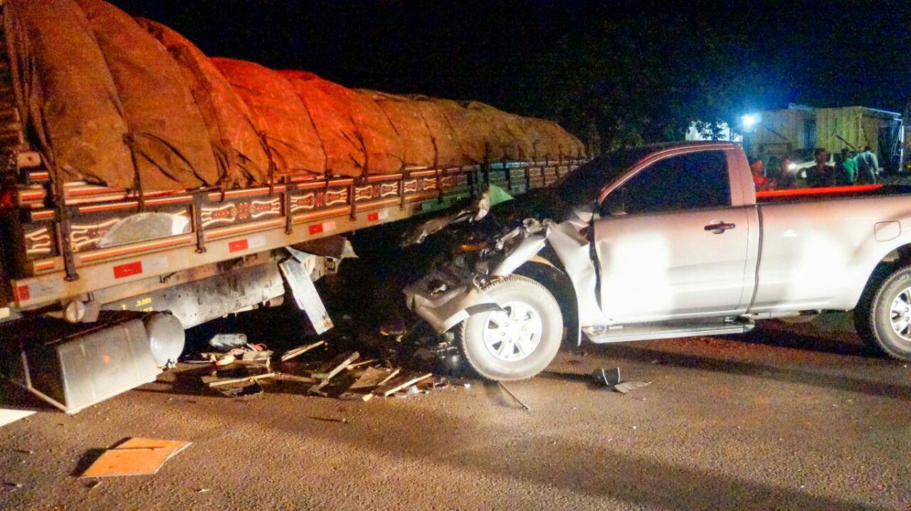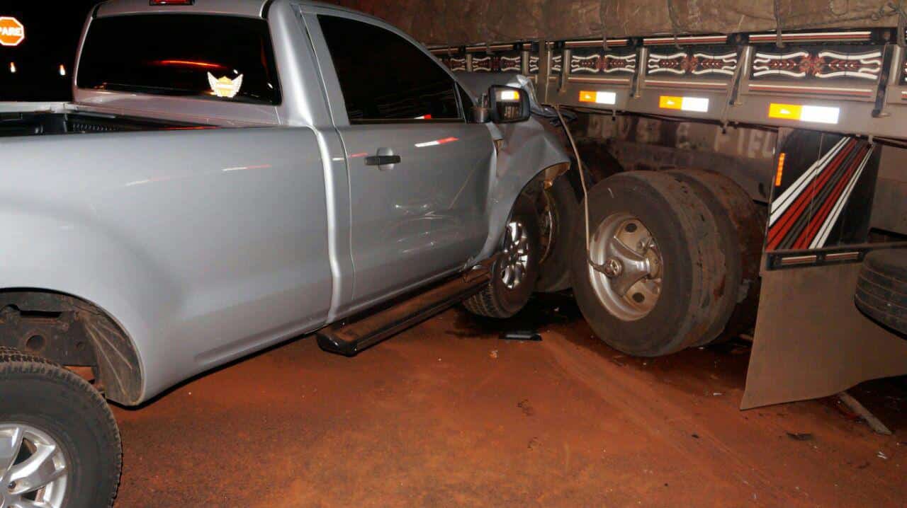 De acordo com a Polícia, o caminhão, com placas de Medianeira (PR) , estava saindo de um posto de combustíveis na altura do quilômetro 427, quando acabou colidindo transversalmente contra uma caminhonete.