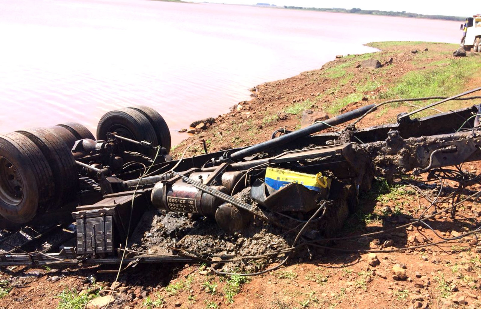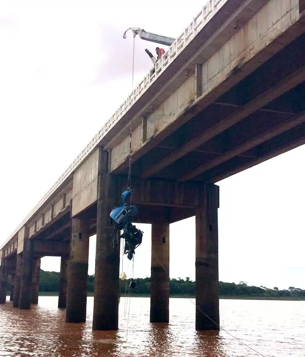 Na quinta-feira, os bombeiros conseguiram retirar das águas partes do caminhão, especialmente do chassi, que estavam a cerca de 12 metros de profundidade.