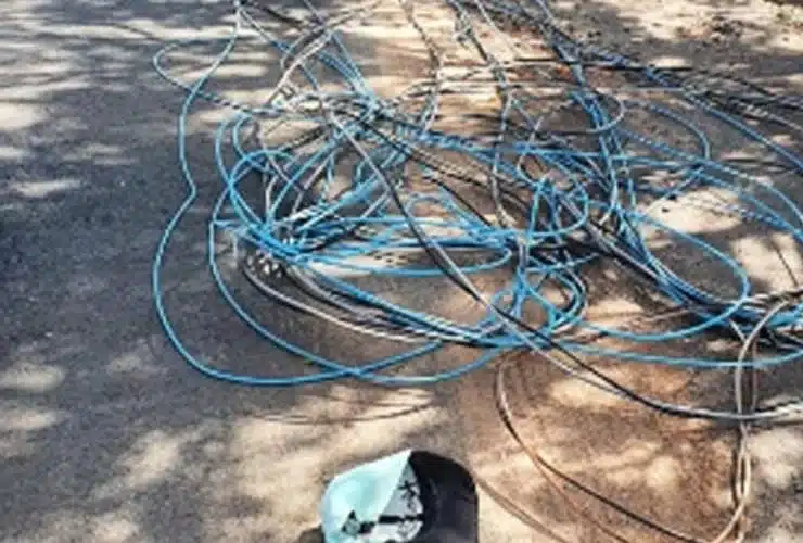 A equipe se deslocou até o local e se deparou com o indivíduo, de 39 anos, arrastando certa quantia de cabos elétricos na Rua Conceição do Monte Alegre. Abordado, ele confessou a prática do furto.