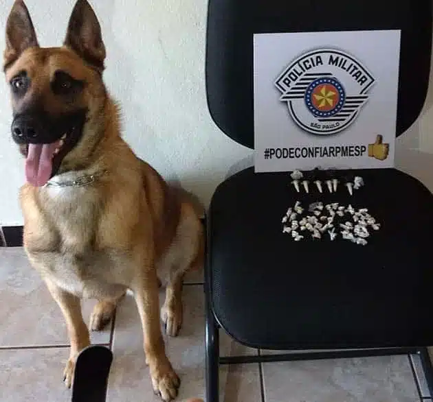 Diante da denúncia e da localização da maconha, os policiais acionaram a equipe do Canil que, com o auxílio do cão ‘Tom’ e do cão ‘Boris’, localizou embaixo de tijolos, próximo aonde encontraram a maconha, 49 pedras de crack e seis eppendorf de cocaína, bem como uma sacola com vários saquinhos para embalar drogas.