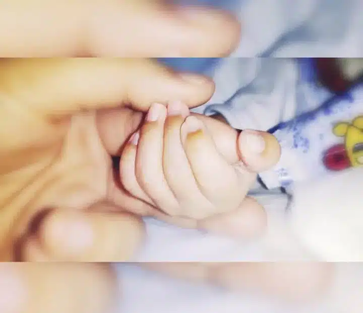 A mensagem foi postada junto com um foto em que mostra o bebê segurando o dedo da mãe.