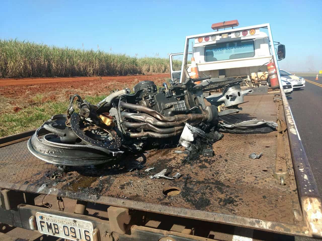 O impacto foi tão forte que a Pampa tombou sobre a pista, causando ferimentos nos dois ocupantes. O motociclista literalmente decolou, passando por cima da caminhonete e foi parar no acostamento, morrendo na hora. A moto, possivelmente uma Hornet 600 cc pegou fogo e ficou destruída (possivelmente placas de Ourinhos). Equipes do Corpo de Bombeiros e de emergências foram mobilizadas para o local.
