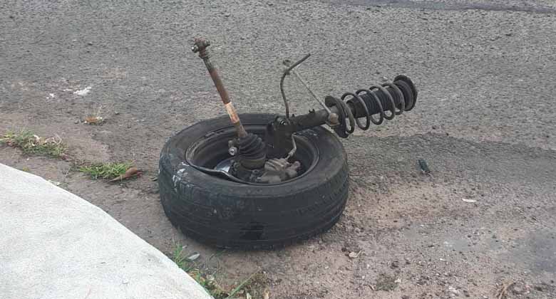 O impacto da colisão foi tão forte que uma das rodas do Citroen/Aircross foi arrancada e o para-brisa danificado.