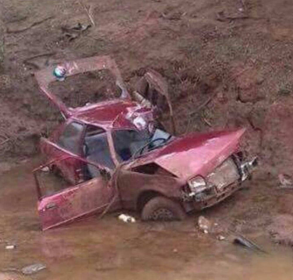 De acordo com informações da polícia, o impacto da batida foi tão forte que o carro caiu em uma mata, onde passa um córrego.