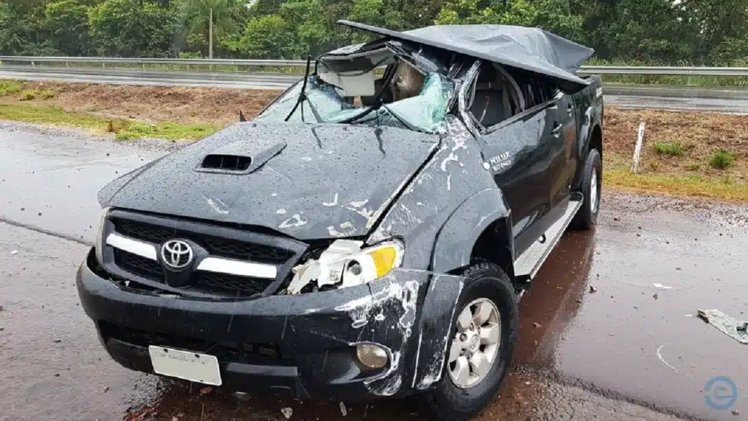 A.B.S., de 72 anos, e R.B.S., de 39 anos, pai e filho, respectivamente, seguiam no sentido norte numa Toyota Hillux, placas de Cândido Mota, quando capotaram.