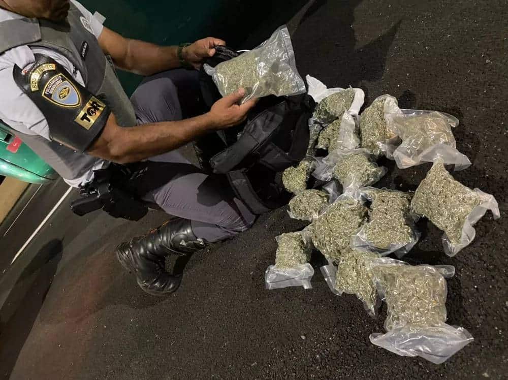 A Polícia Militar Rodoviária apreendeu 21 pacotes de skank durante uma fiscalização na Rodovia Raposo Tavares (SP-270), em Presidente Venceslau (SP). A ocorrência, neste domingo (3), ainda teve a prisão de uma mulher de 27 anos.