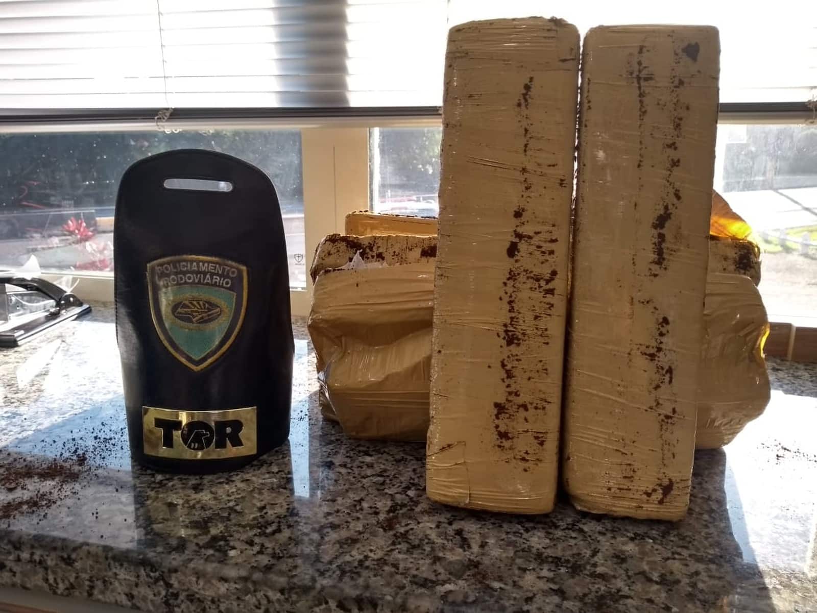Durante a fiscalização, a mulher demonstrou nervosismo. Ao verificar o compartimento de bagagem, os policiais encontraram a bolsa dela com os entorpecentes.