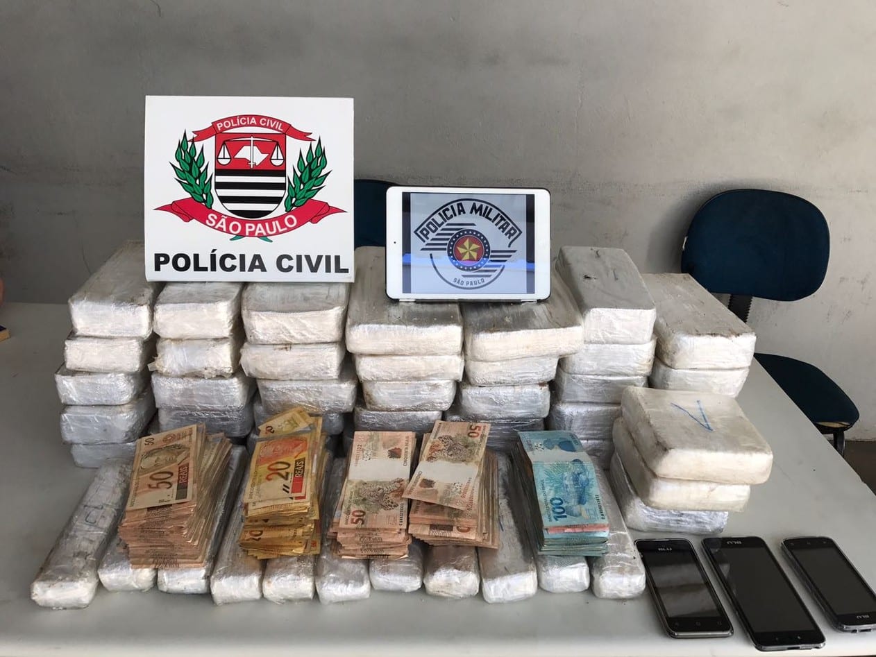 A Polícia apreendeu no domingo (27) aproximadamente 40 quilos de crack e R$ 52 mil em dinheiro que estavam escondidos dentro de um veículo, em Assis (SP).