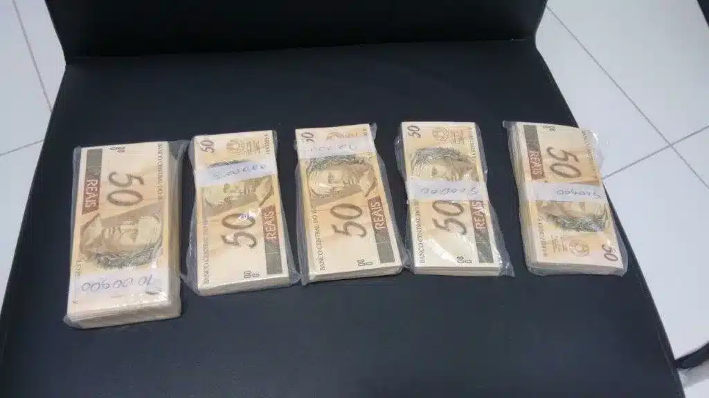 De acordo com informações da Polícia Civil, o suspeito, que é morador da rua México, foi flagrado com diversas notas de R$ 50 divididas em vários pacotes.