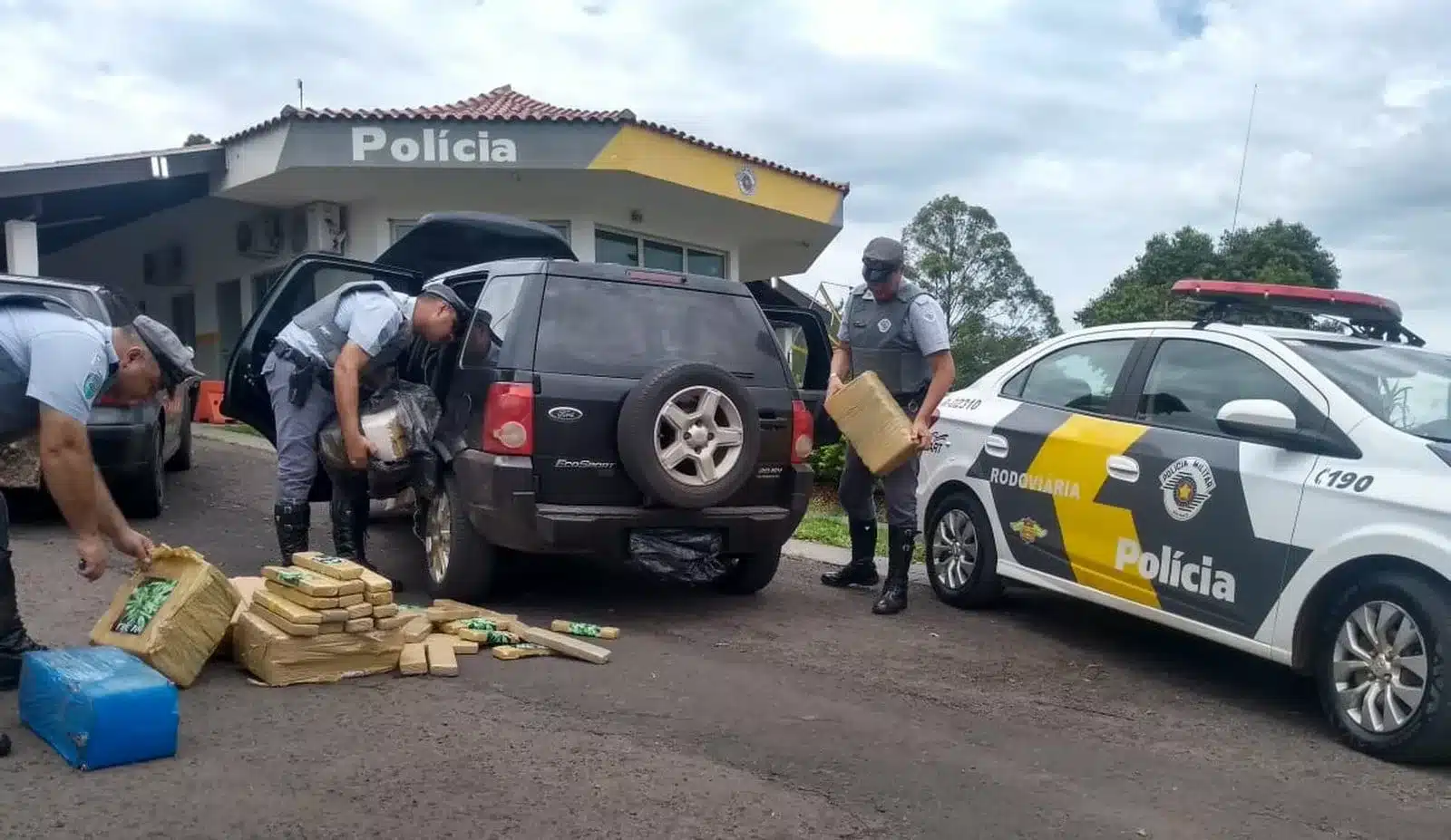 Em seguida, a polícia abordou um veículo também com placas do Paraná, dirigido por um jovem de 20 anos. Dentro do porta-malas, a polícia encontrou os tabletes da maconha, que pesaram 199,410 kg.