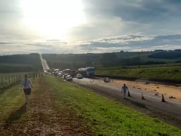 Interdição esta que foi causado depois da colisão de dois caminhões, sendo um que transportava milho e outro com carga de hidrogênio.