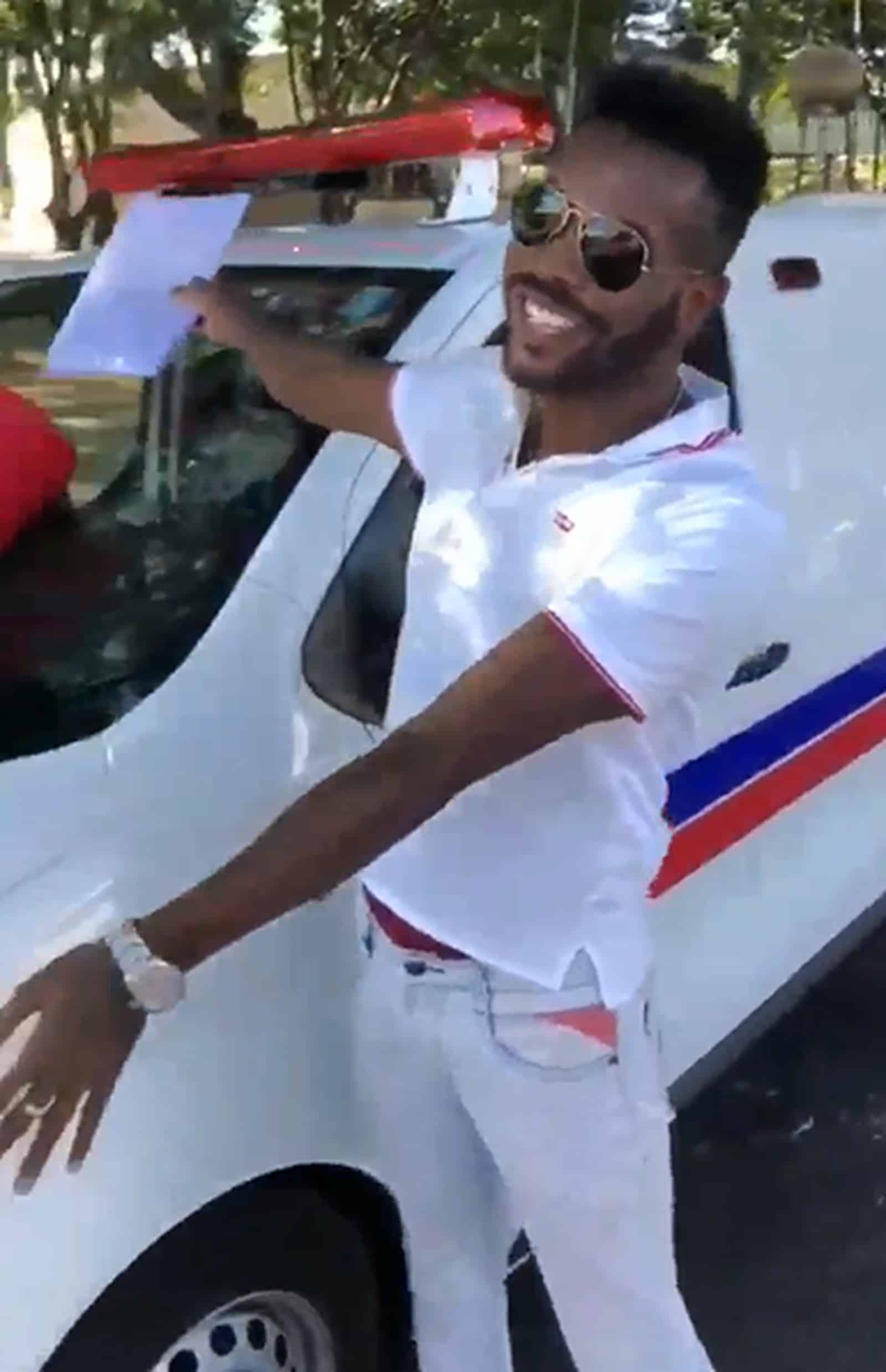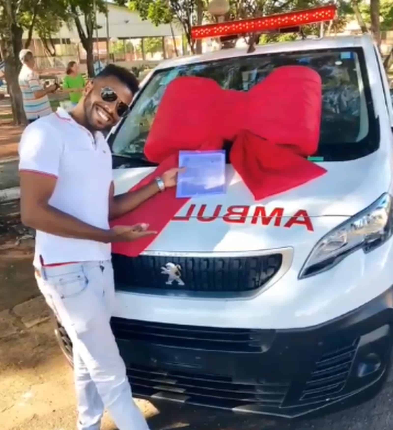 “Alô, Tapinas, a ambulância chegou. Que felicidade, gente, entregando aqui a ambulância. Tô parecendo criança brincando com isso aqui.”