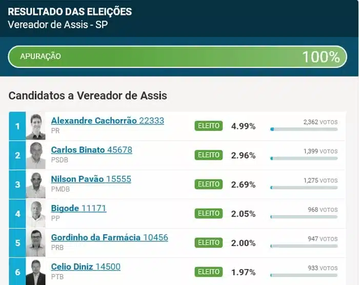 Cinco vereadores que cumprem mandato foram reeleitos.