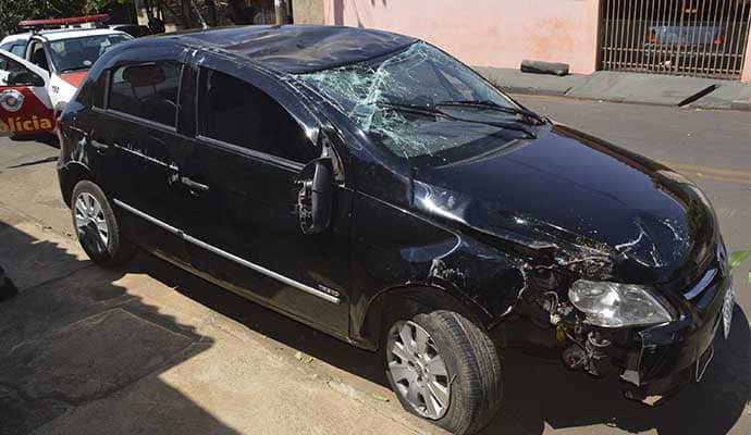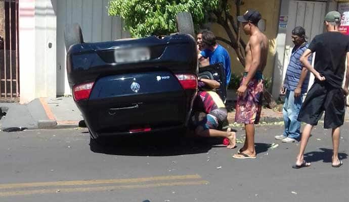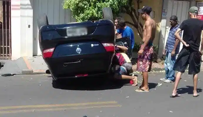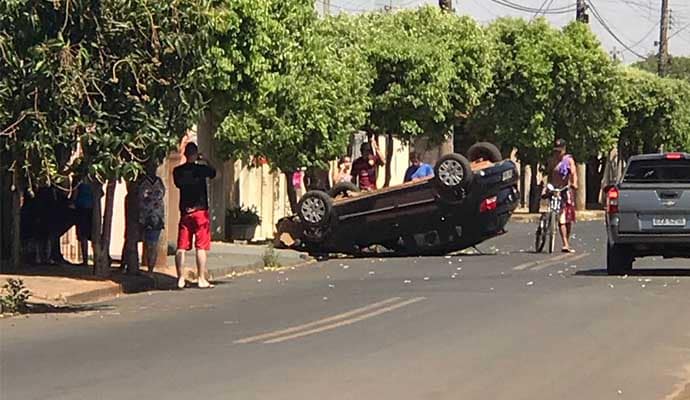 Um veículo VW/Gol ficou com as rodas para cima após o motorista perder o controle da direção, na manhã desta quarta-feira, dia 13, em Paraguaçu Paulista.