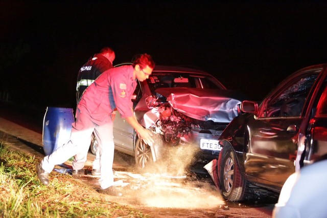 De acordo com as informações da Polícia Militar e do Corpo de Bombeiros, os veículos bateram de frente depois que um dos carros invadiu a pista contrária.