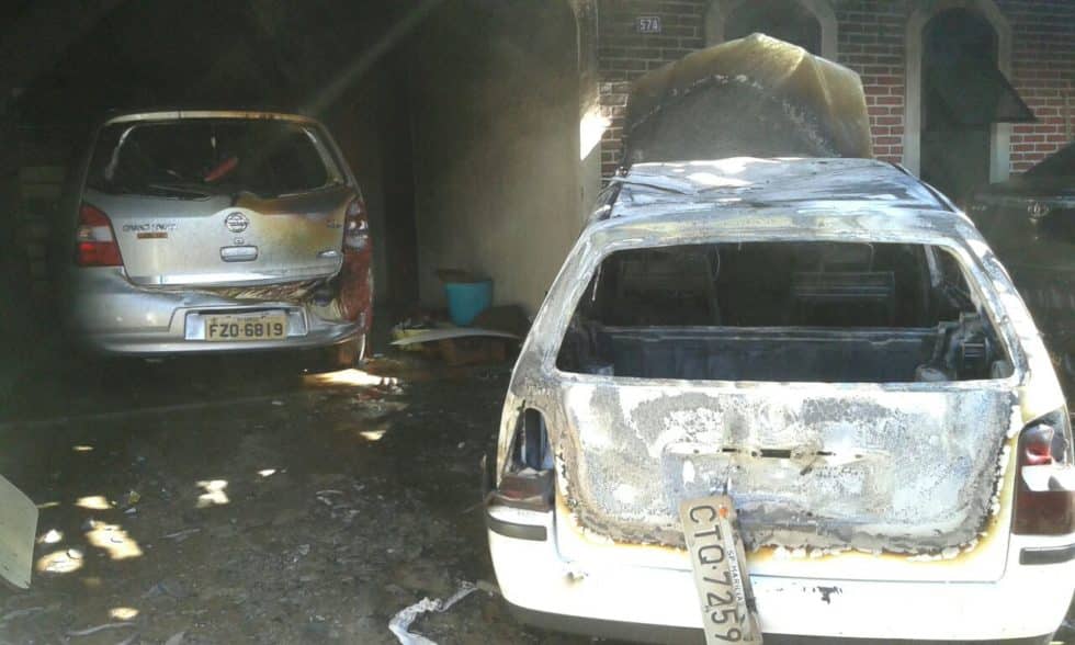 Segundo as primeiras informações do setor de comunicação da corporação, as chamas atingiram um dos três veículos que estavam estacionados na garagem de uma residência pela rua.