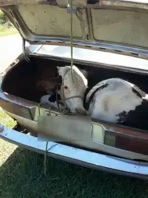 Segundo a Polícia Militar, quatro homens invadiram a propriedade e levaram o animal no porta-malas do carro. O dono viu e começou a persegui-los enquanto chamava a polícia.