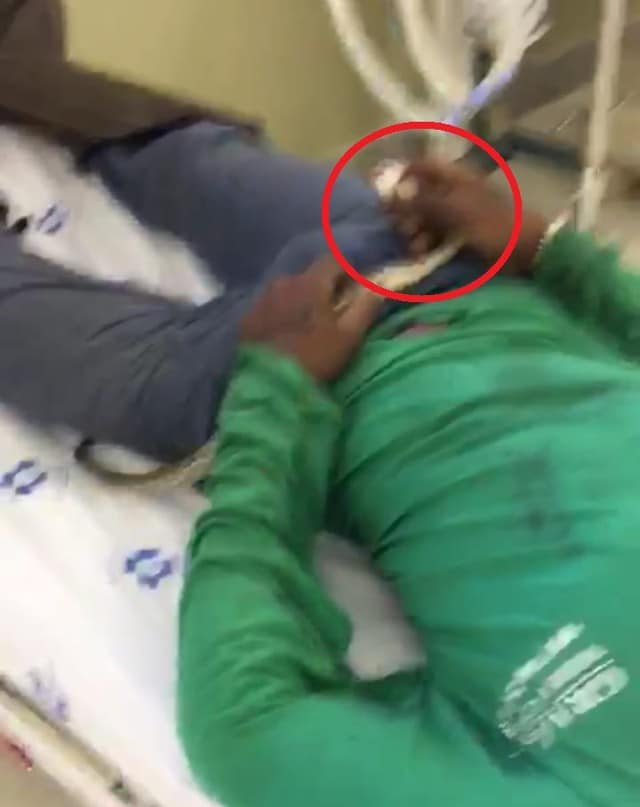 Nas fotos é possível ver que, mesmo deitado na maca, ele segura o animal nas mãos.