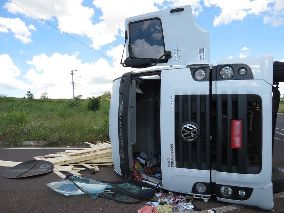 [dropcap]U[/dropcap]m caminhão bitrem carregado com ripas de madeira tombou, nesta quinta-feira (8), no km 650 da Rodovia Comandante João Ribeiro de Barros (SP-294), em Dracena, próximo à Universidade Estadual Paulista (Unesp). Ninguém se feriu.