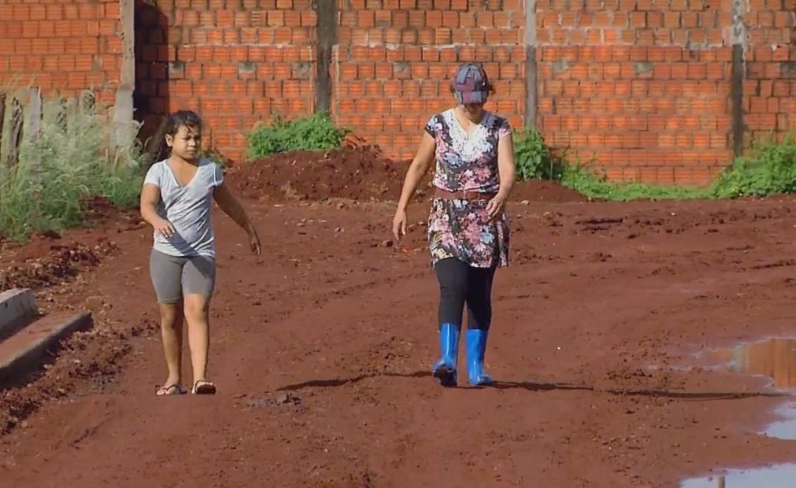 “O dia que levei meu filho com sapatos normais, meu pé afundou no barro e precisei voltar para casa. Agora, só consigo chegar à creche com galochas”, diz a dona de casa Angélica Aparecida de Brito.