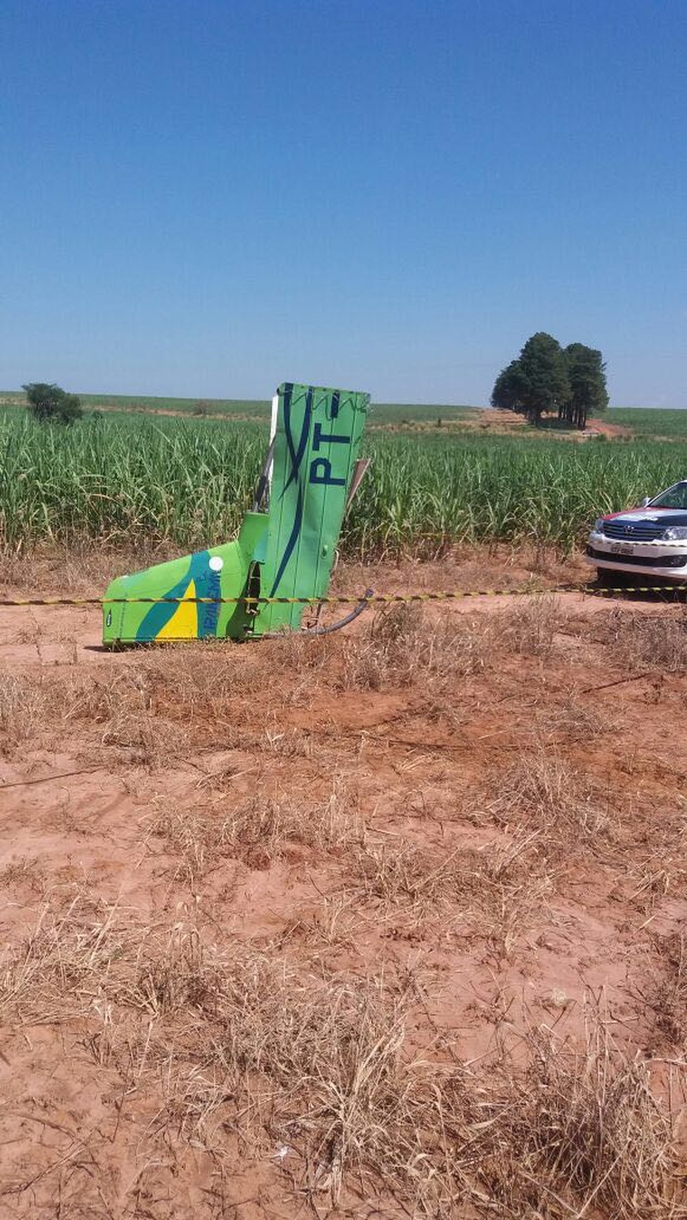 A aeronave, de matrícula PT-URM, explodiu na queda. O piloto Guilherme Torres, de 26 anos, que era morador de Guararapes (SP), morreu na queda.