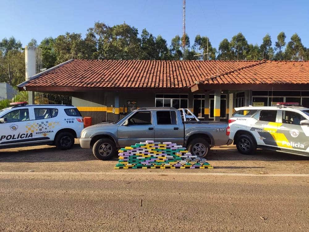 A Polícia Rodoviária abordou o motorista, que dirigia uma caminhonete com placas do Mato Grosso do Sul. Durante a vistoria, foram localizadas cinco bolsas com 123 tabletes de cocaína.