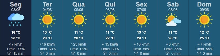 Confira como fica a temperatura para os próximos dias.
