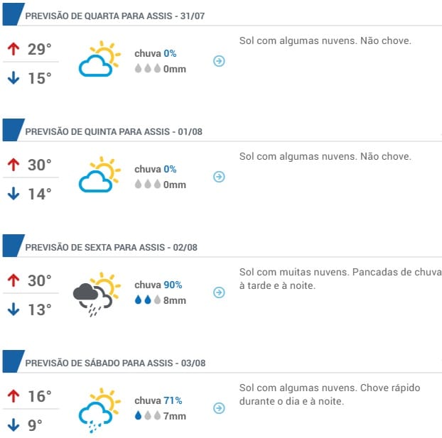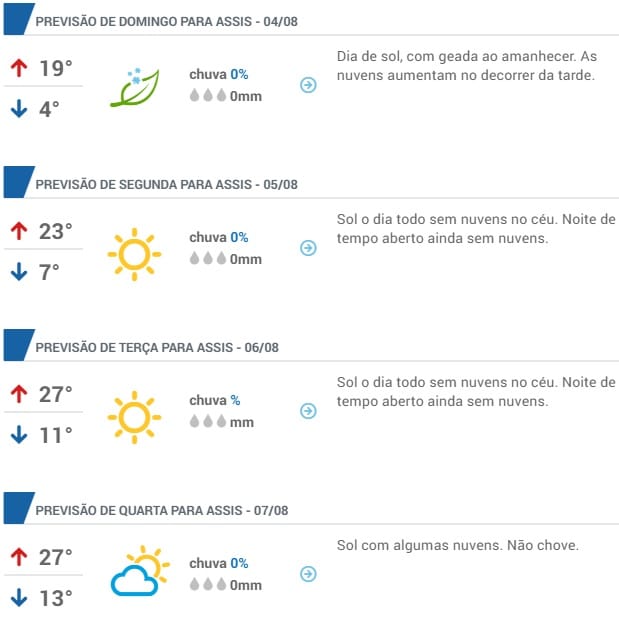 O tempo e a temperatura em Assis (SP) se mantém estabilizados nos últimos dias do mês de julho, porém, o inverno ainda mostra sua força e o início de agosto deverá ter temperaturas abaixo dos 5ºC de acordo com o Instituto de Pesquisas Meteorológicas da Unesp (IPMet).