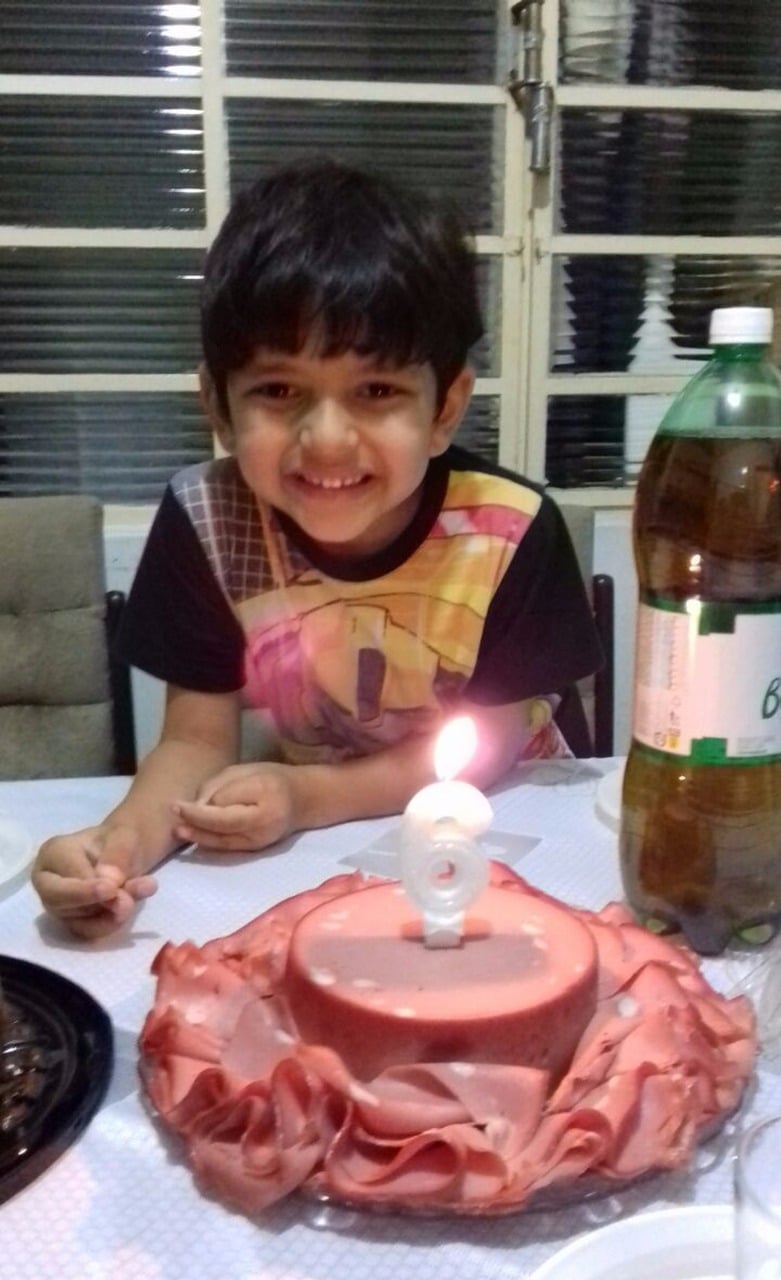 O pequeno Isaac Souza Soares, morador do bairro Alto Cafezal, em Marília, completou seis anos de idade na última segunda-feira (24) em uma festinha de aniversário com detalhe bastante inusitado: o bolo era de mortadela e com direito até a vela e pedido antes de assoprar.
