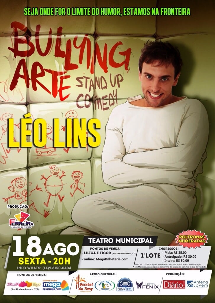 O humorista Léo Lins, conhecido pelos seus livros sobre stand-up comedy e por fazer parte do elenco do programa The Noite, de Danilo Gentili, estará em Assis (SP) no próximo dia 18, sábado, às 20h, para apresentar o “Bullying Arte”, show repleto de humor negro, ácido e afiado, provocações com piadas locais e as famosas “fritadas” do comediante.