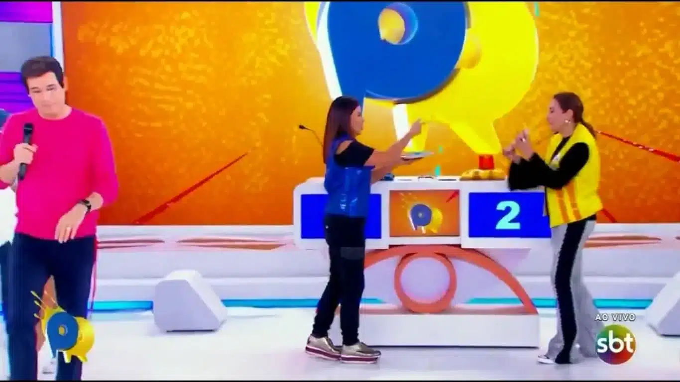 Tudo começou quando Sonia Abrão, convidada para o game show, disputou uma das rodadas de pergunta com Mara Maravilha. A contratada do SBT levou a melhor e tinha que dar uma tortada na apresentadora do “A Tarde É Sua”, da RedeTV!. “Corre, Sonia!“, pediu Celso Portiolli.
