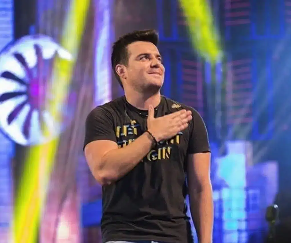 Enquanto a dupla sertaneja cantava no palco, o cantor Bruno Belutti foi atingido por uma bomba, artefato usado para efeitos especiais no próprio show da dupla.