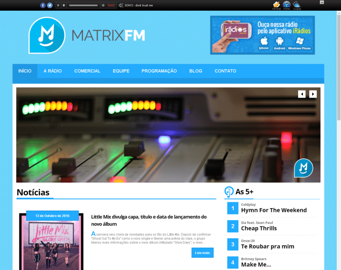 Além disso, a “web-emissora” pode ser ouvida através dos apps para iphone, android e windowns phone ou pelo próprio site http://matrixfm.com.br/.