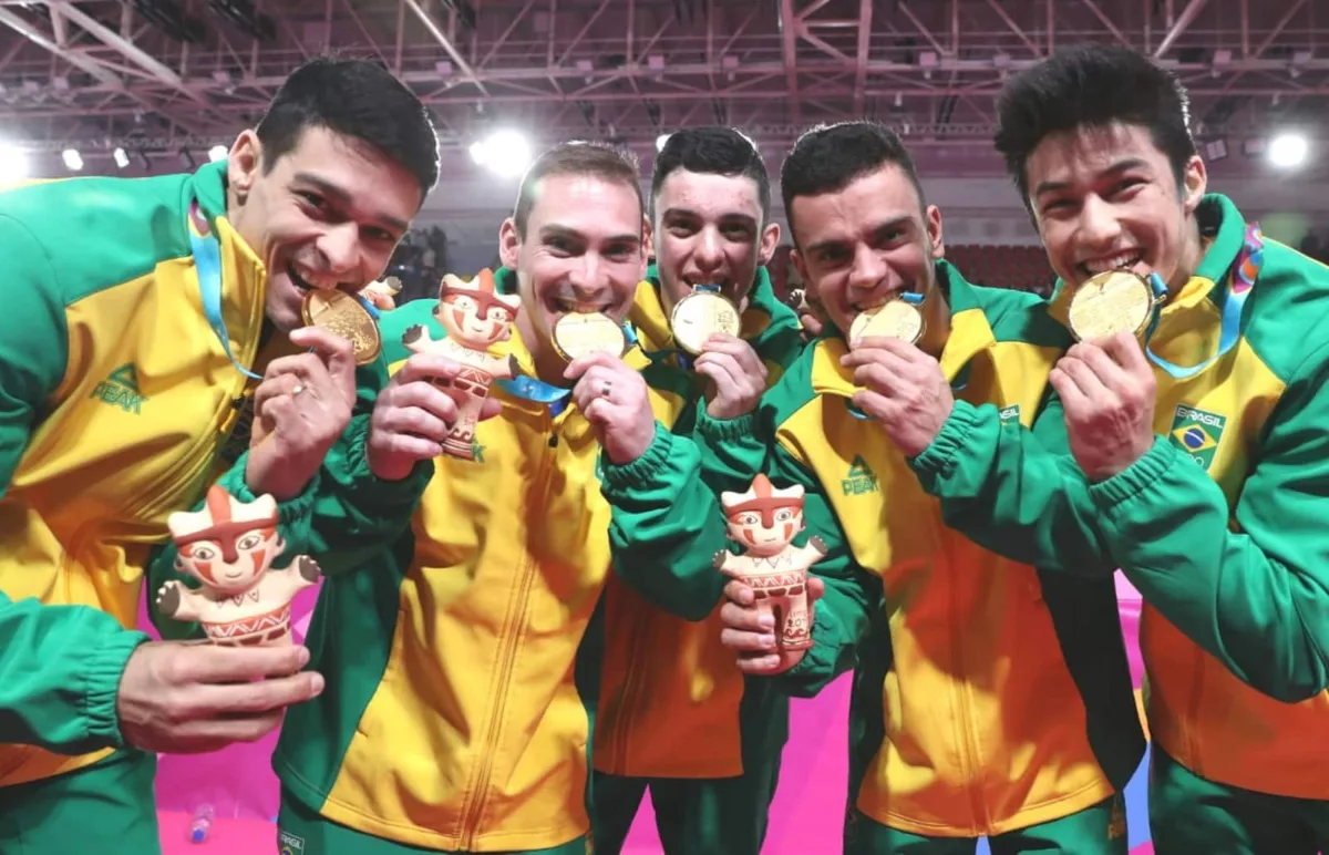 Da arquibancada, a equipe masculina do Brasil acompanhava a apresentação dos Estados Unidos na noite deste domingo. Arthur Zanetti, Arthur Nory, Caio Souza, Francisco Barretto e Luis Guilherme Porto sabiam que tinham feito um ótimo trabalho mais cedo, na primeira subdivisão dos Jogos Pan-Americanos de Lima. Era questão de tempo para conhecer a cor da medalha do grupo. E ela foi dourada! Nem precisou secar os americanos, que ficaram com a prata. O Brasil faturou a medalha de ouro por equipes na ginástica artística e mais 12 vagas nas finais individuais.
